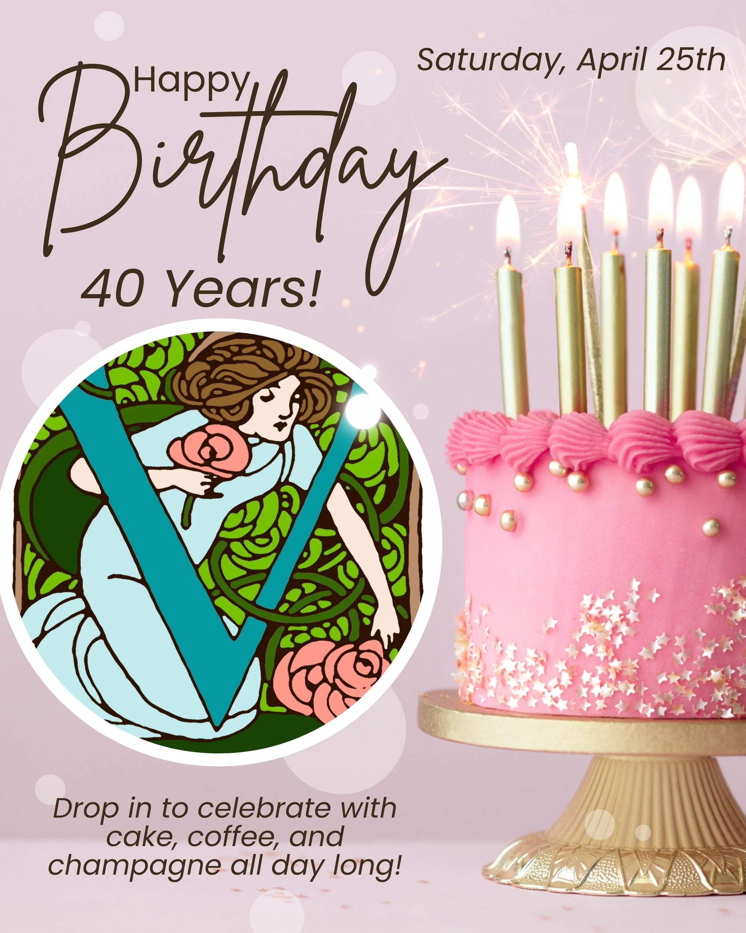 🎂🥂 Drop in to celebrate with cake, coffee, and champagne all day long!