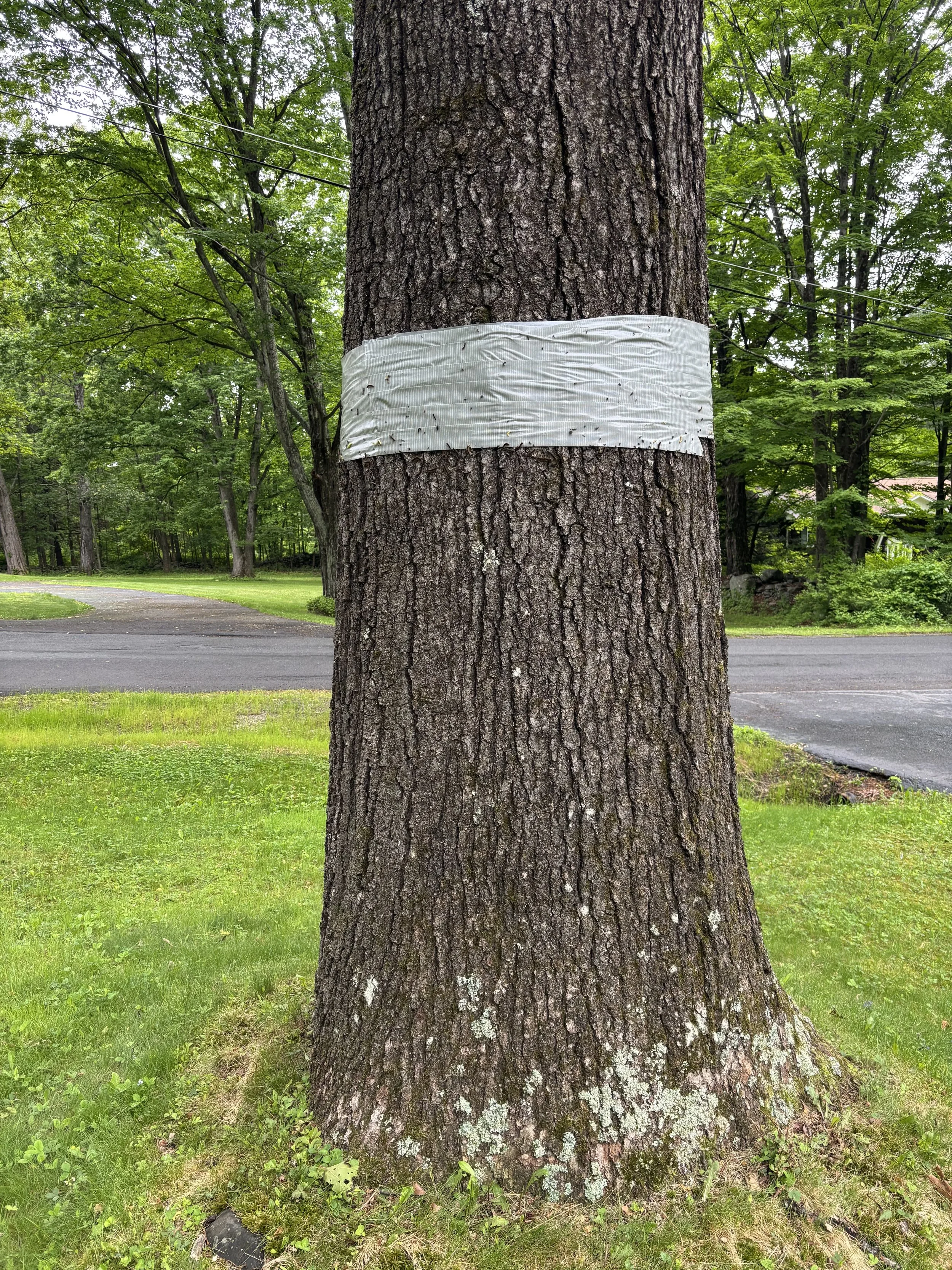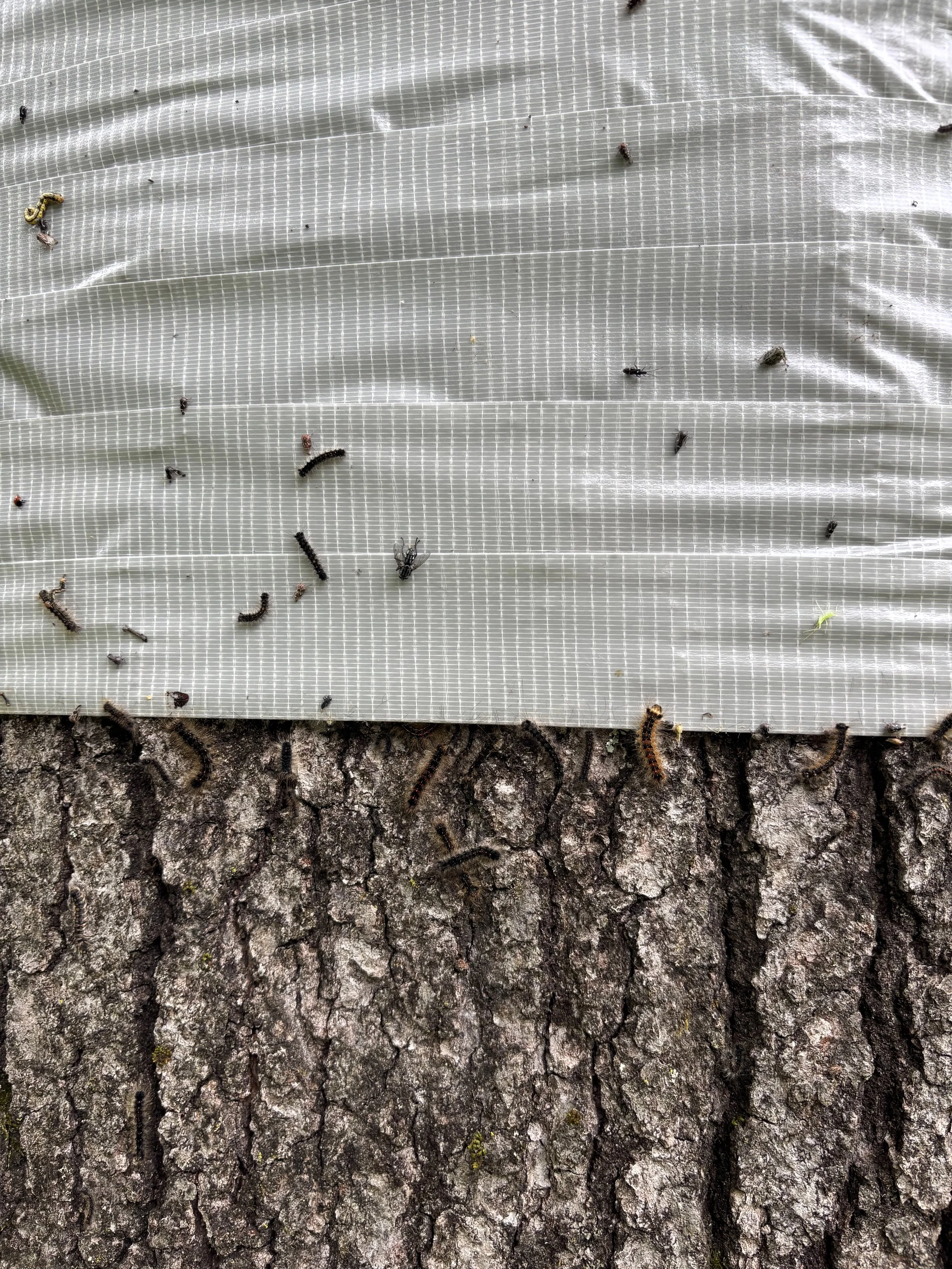 A client recently came across a method on Facebook for controlling spongy moth caterpillars, and it appears to be working well on the two large oak trees in her front yard!