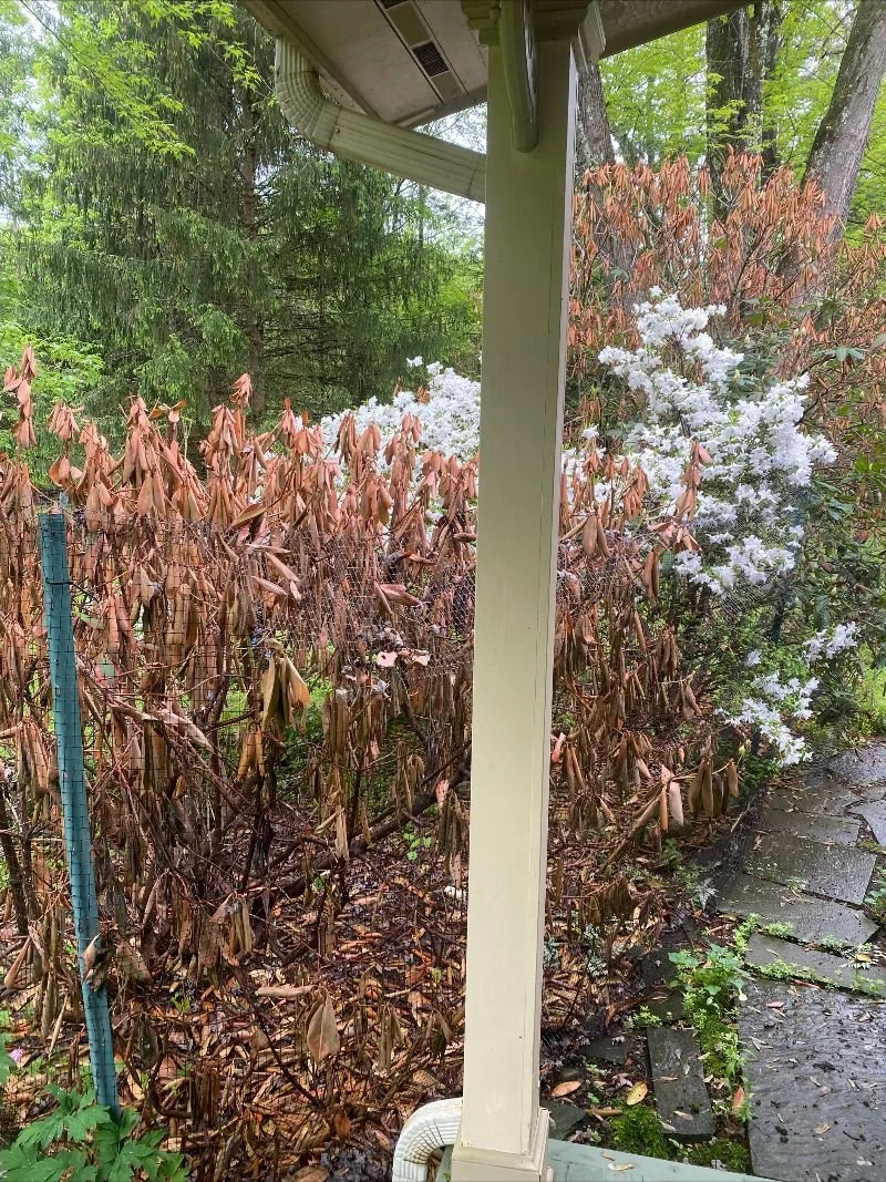 The winter damage we’re seeing isn’t just from cold temperatures—it’s the legacy of a fall drought, a season when we often stop thinking about watering. Rhododendrons and their evergreen companions need us to think ahead.