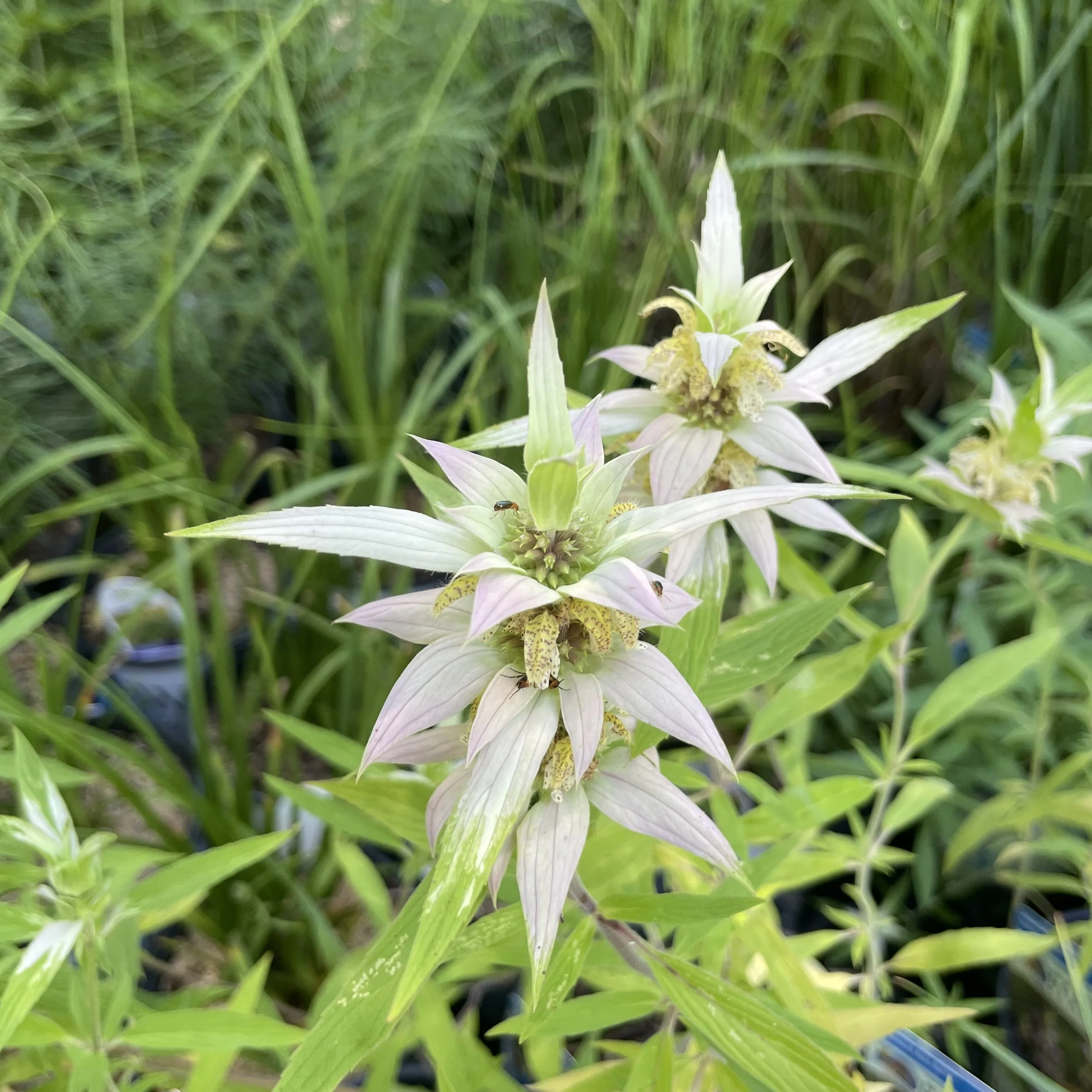 A pollinator magnet, Monarda punctata, or spotted bee balm, rises in whorled tiers of creamy-lavender bracts with speckled tubular blooms. Native to much of North America, this plant thrives in dry, sandy soils and hot sun. Its upright, architectural habit pairs beautifully with perennial grasses.