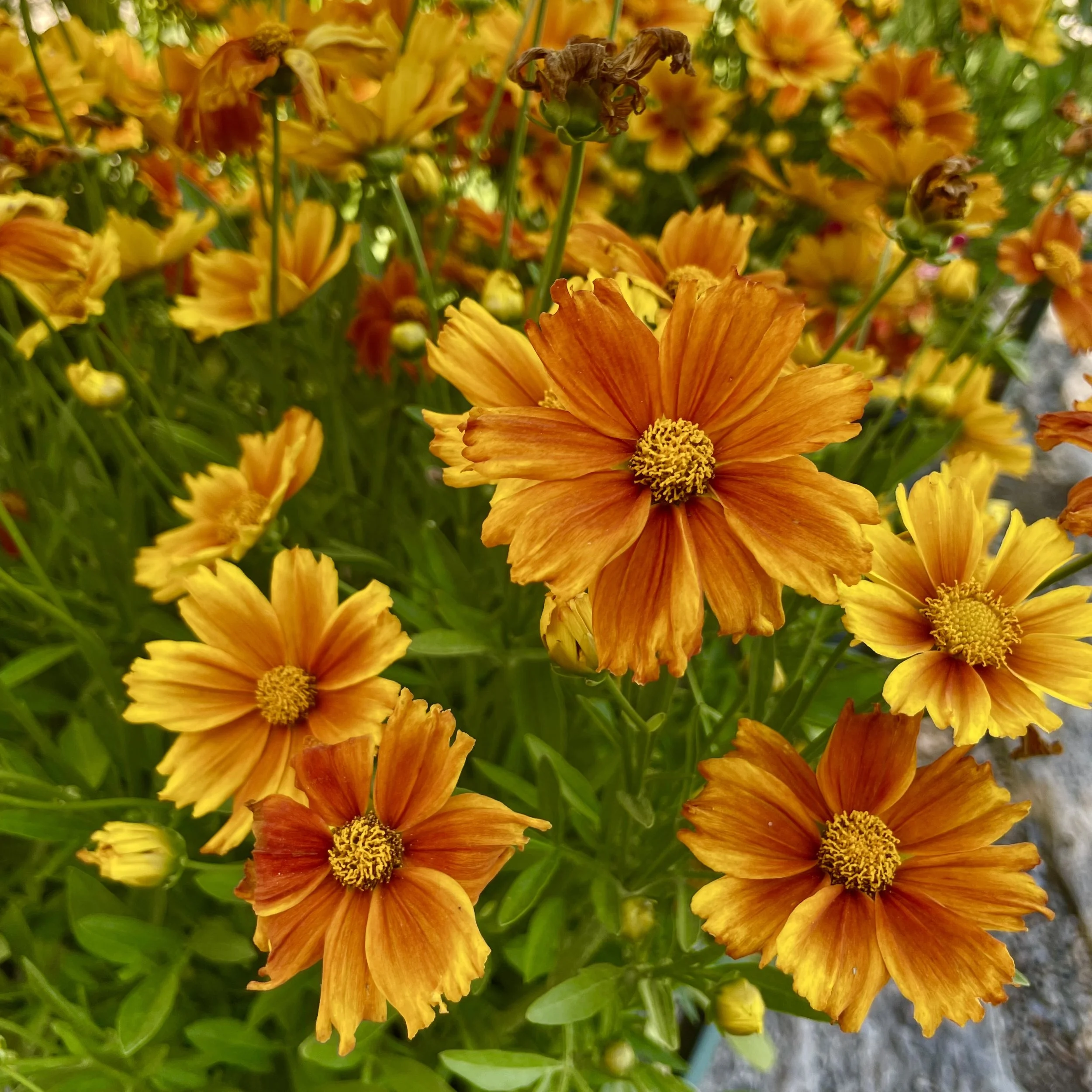 From the Lil Bang series, ‘Darling Clementine’ stands out with rich tangerine-orange blooms that dance above finely textured foliage. While most Coreopsis spread horizontally, this cultivar maintains a tidy, upright habit with a profusion of blooms all summer long.